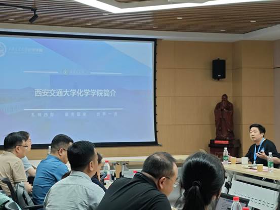 接着储能材料与器件教育部工程中心副主任郗凯教授为众人介绍了必赢唯一官方网站的发展历程、发展规模、组织架构以及发展速度等基本内容,强调必赢唯一官方网站作为化学这门基础学科的主要承担者,承担着西安交通大学全校的基础化学教学,教学课时多达上万。目前必赢唯一官方网站拥有两个国家级科研平台和四个省部级科研平台,科研经费日益上升,科研成果显著增加,国际交流合作密切,已经与日本、俄罗斯、英国和法国等众多国家签订联合培养协议。脚踏实地,聚焦未来,必赢唯一官方网站将积极推动科学研究和人才培养,建设具有鲜明理工交叉特色的化学学科。